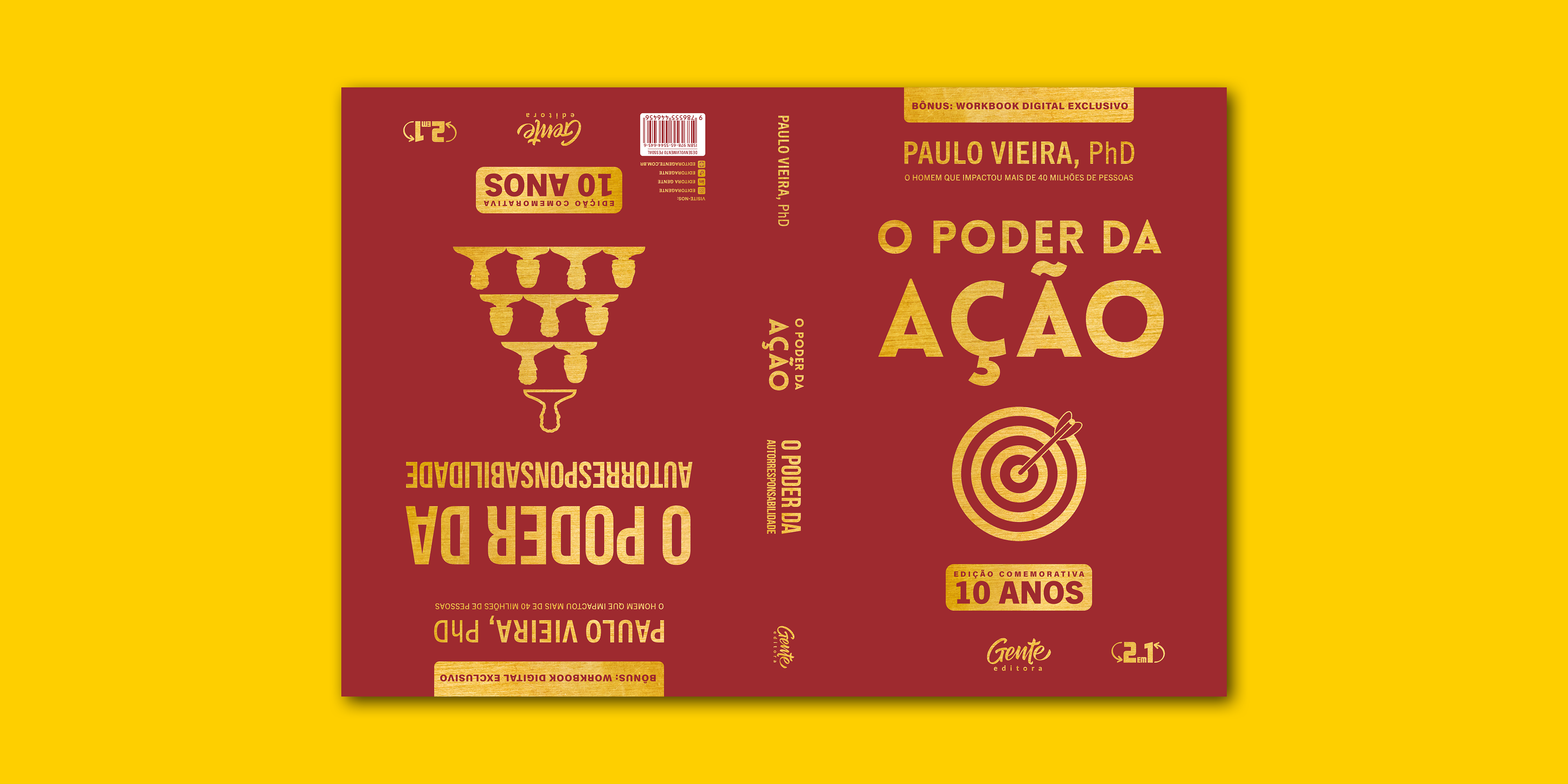To celebrate the 10th anniversary of O Poder da Ação and O Poder da Autorresponsabilidade — bestselling Brazilian titles by Paulo Vieira, PhD — I had the honor of joining the commemorative edition project, creating a luxury hardback “flip book” (capa dura vira-vira), redesigning both the cover and the internal graphic layout.